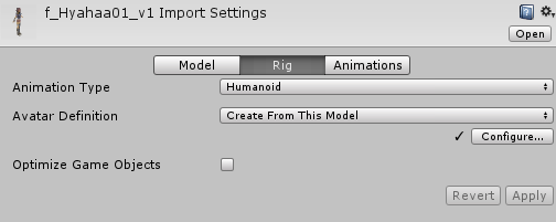 (Humanoidのリグにできないキャラだとどうなるのか未確認)